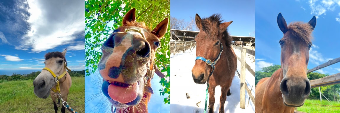 老若男女、個性溢れる馬達の数なんと70頭以上!それぞれの馬のコメントは牧場に掲示してあります。