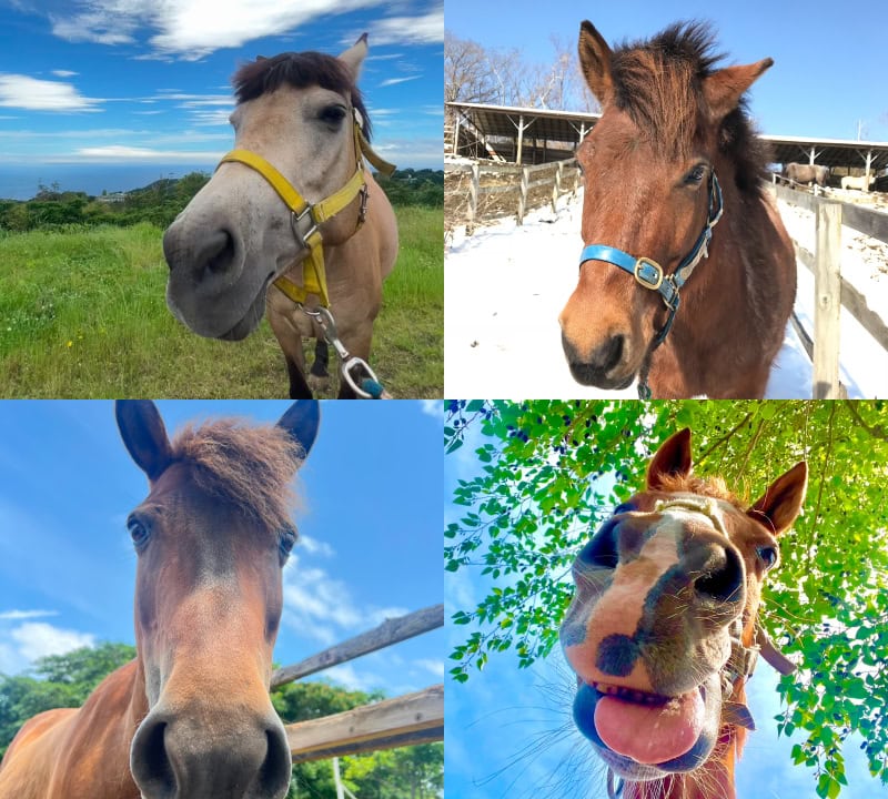 老若男女、個性溢れる馬達の数なんと70頭以上!それぞれの馬のコメントは牧場に掲示してあります。