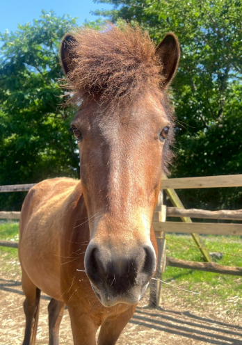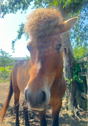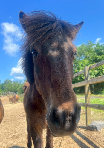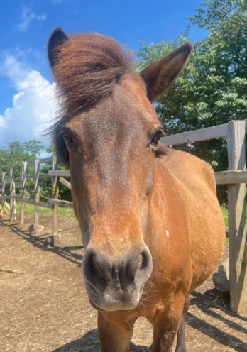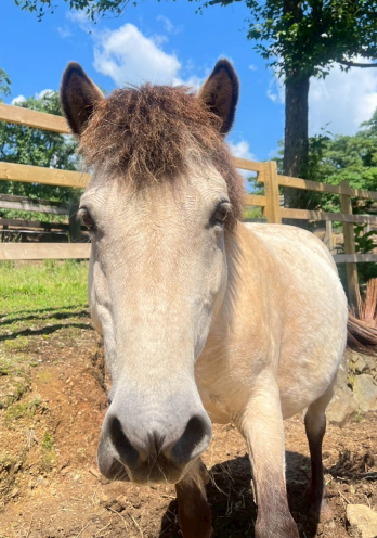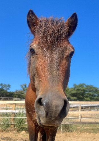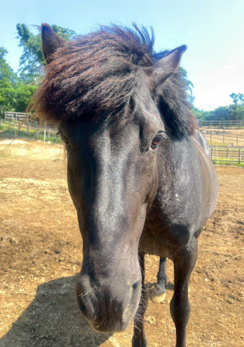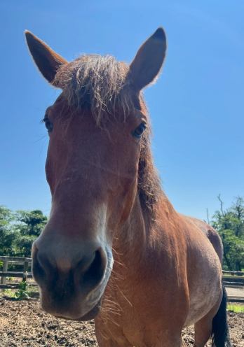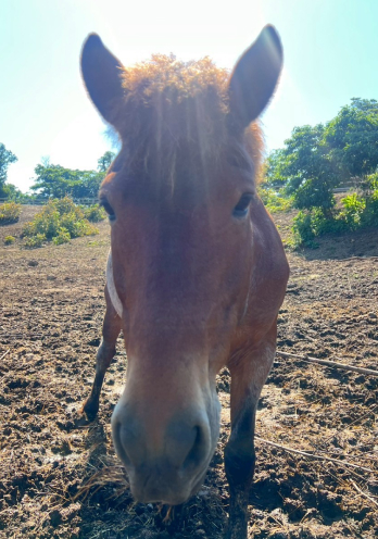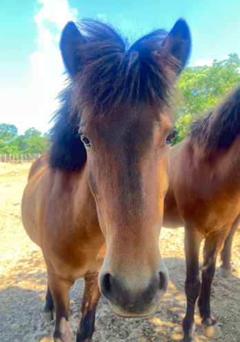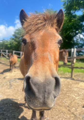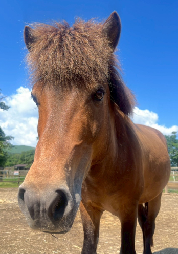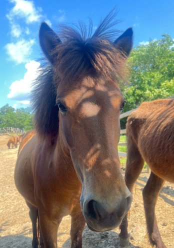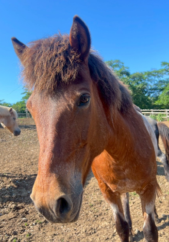 与那国島にずっと昔からいる馬で、もともとは農耕馬でした。体重200kg前後と小柄ながら力持ちです。